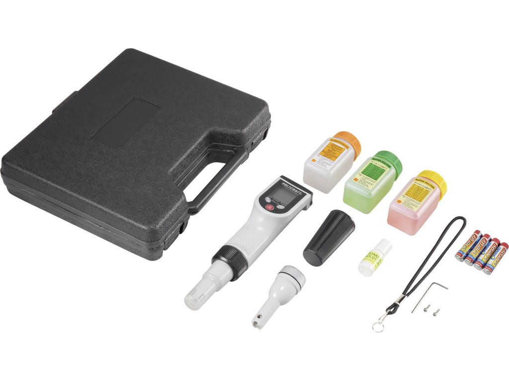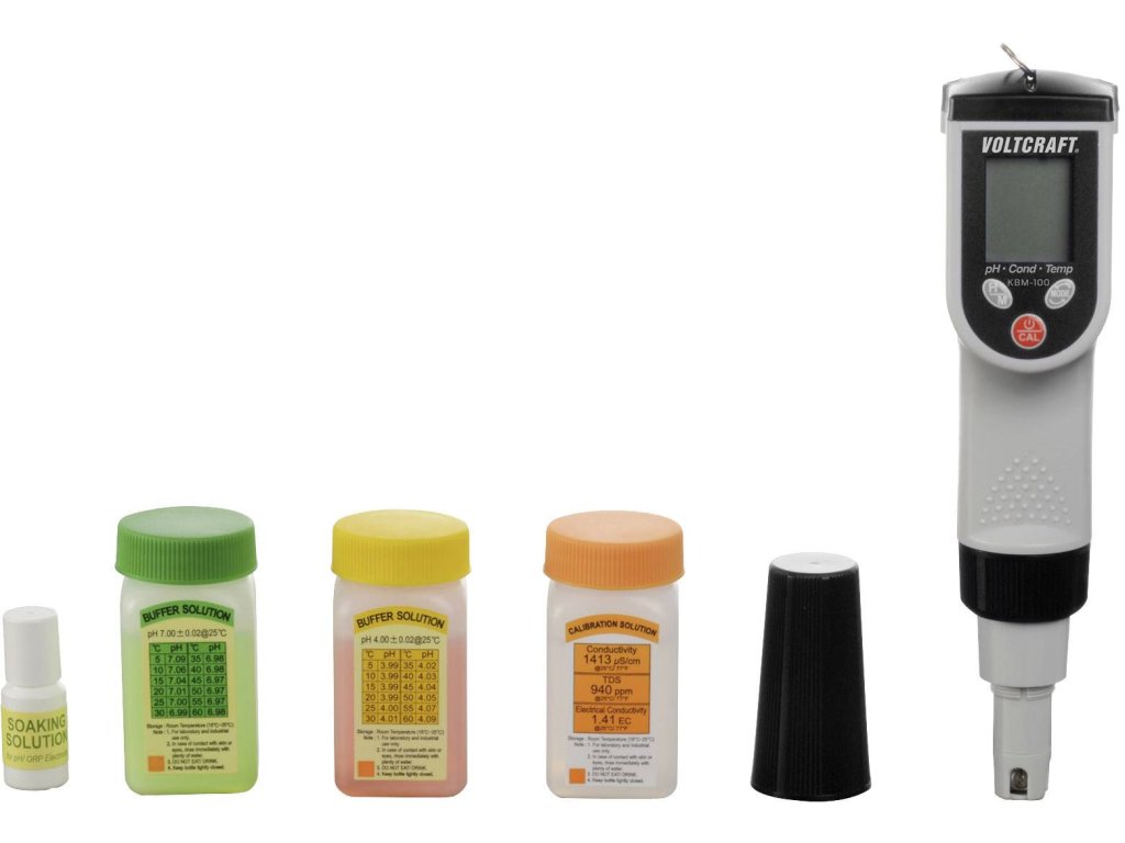 Kombinovaný měřicí přístroj umožňuje velký počet měření, která jsou potřebná pro analýzu vody. Přístroj je ideální pro akvaristiku, chov ryb nebo kontrolu bazénů. Na displeji se po každém měření zobrazí teplota. To umožňuje rychlé rozpoznání odchylek teplot, způsobených příliš vysokou teplotou testovacího média. Snímače jsou určeny pro analýzu vodných roztoků.Specifikace: