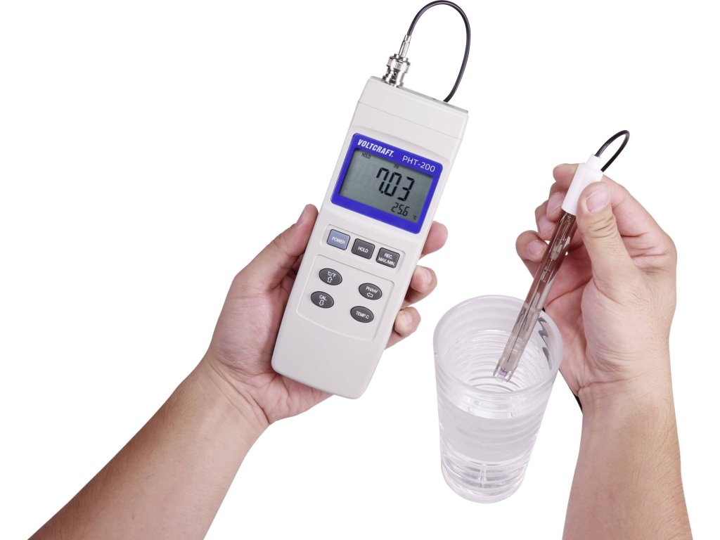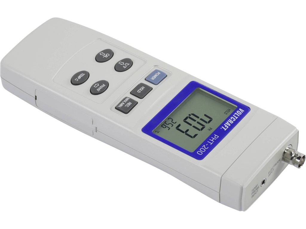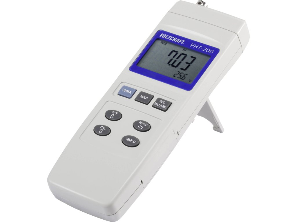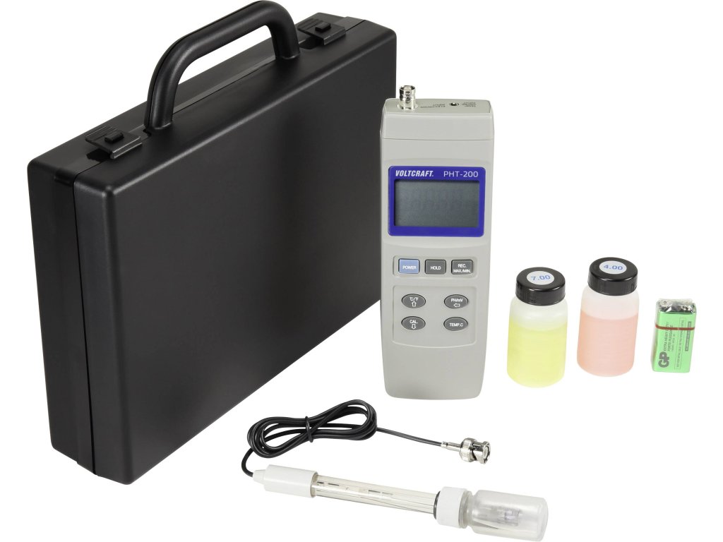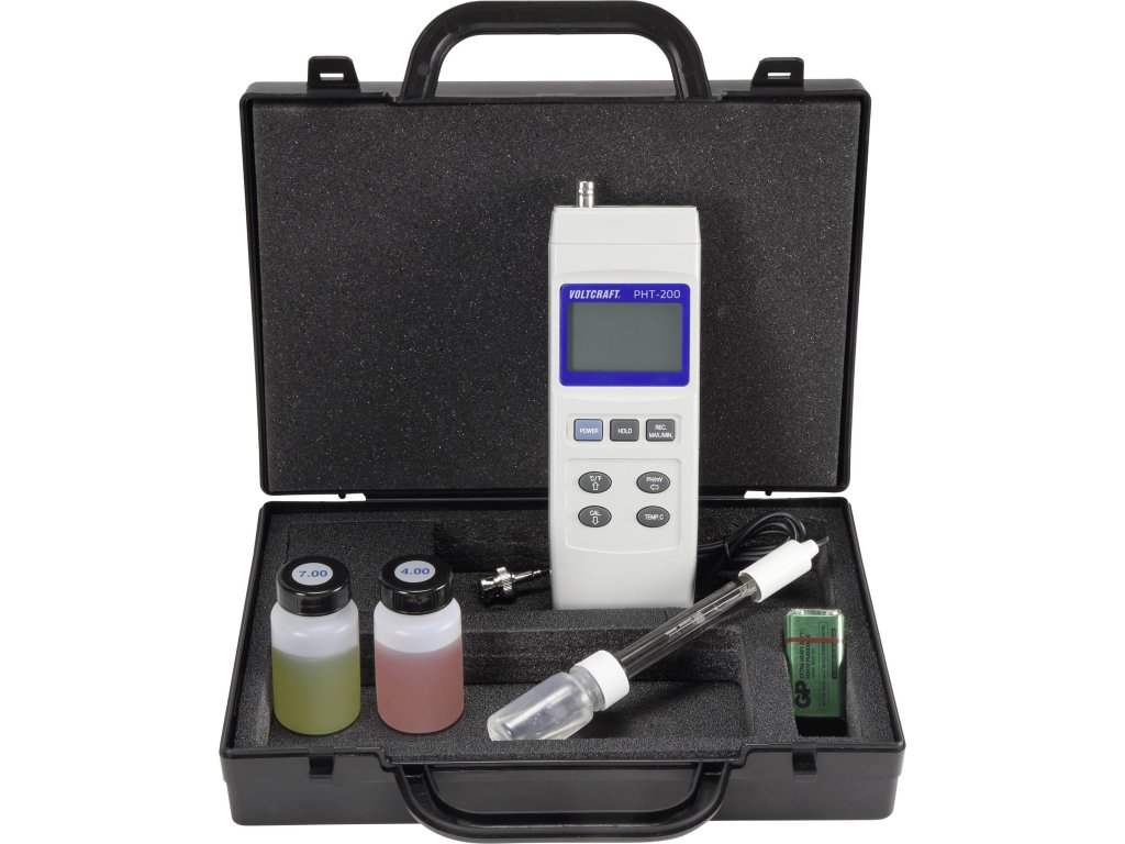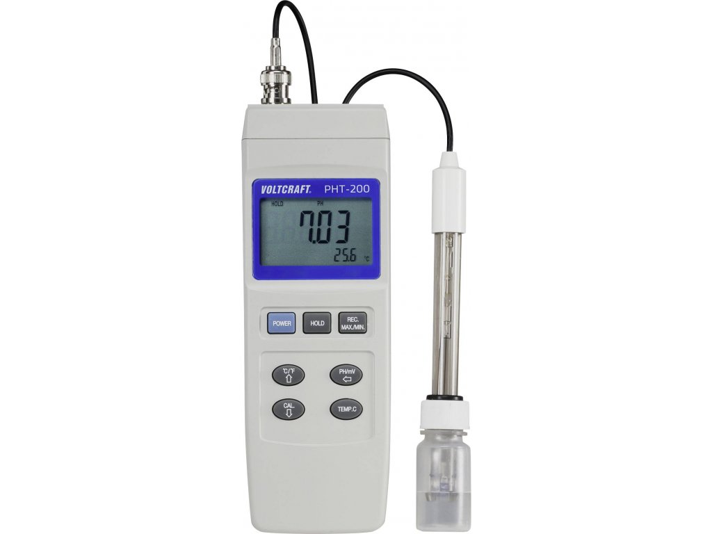 Voltcraft PHT-200 je měřicí přístroj ke stanovení hodnoty pH a redoxního potenciálu. Na bázi měření napětí lze provádět i ionselektivní měření. Nový pH metr nabízí všechny funkce a vlastnosti nezbytné pro každodenní použití v laboratořích, při kontrole vody, v akváriích, ve fotografii, v papírenském průmyslu, v galvanické technice nebo při kontrole kvality i pro použití ve školách a na univerzitách. Díky integrovanému teplotnímu senzoru se využijí výhody automatické teplotní kompenzace pro všechny výsledky měření.Specifikace: