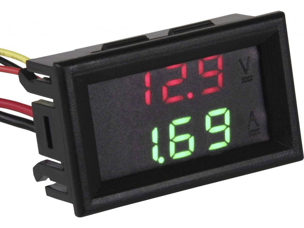 Barva displeje: červená (napětí) / zelená (proud)