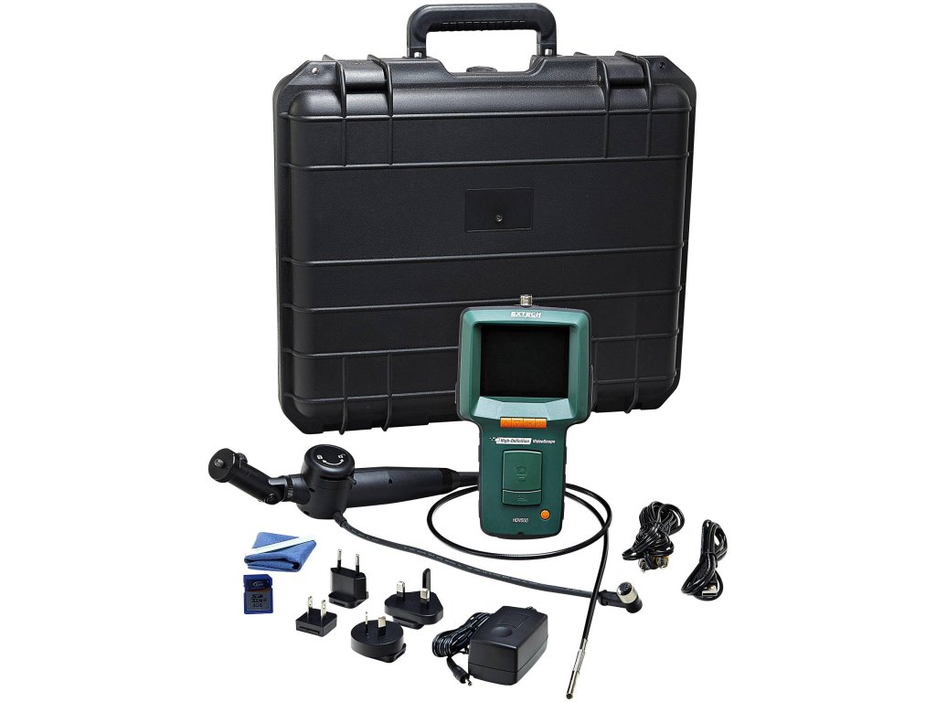 Videoskop s vysokým rozlišením Extech s kamerou kloub sonda pro vizuální kontrolu odlehlých oblastí.Tento přístroj je určen pro použití jako dálkové zkušební přístroj. Lze použít pro na úzké a jinak nedosažitelných místech. Přístroj může zaznamenávat snímky a videa, zopakovat, ukládání a na