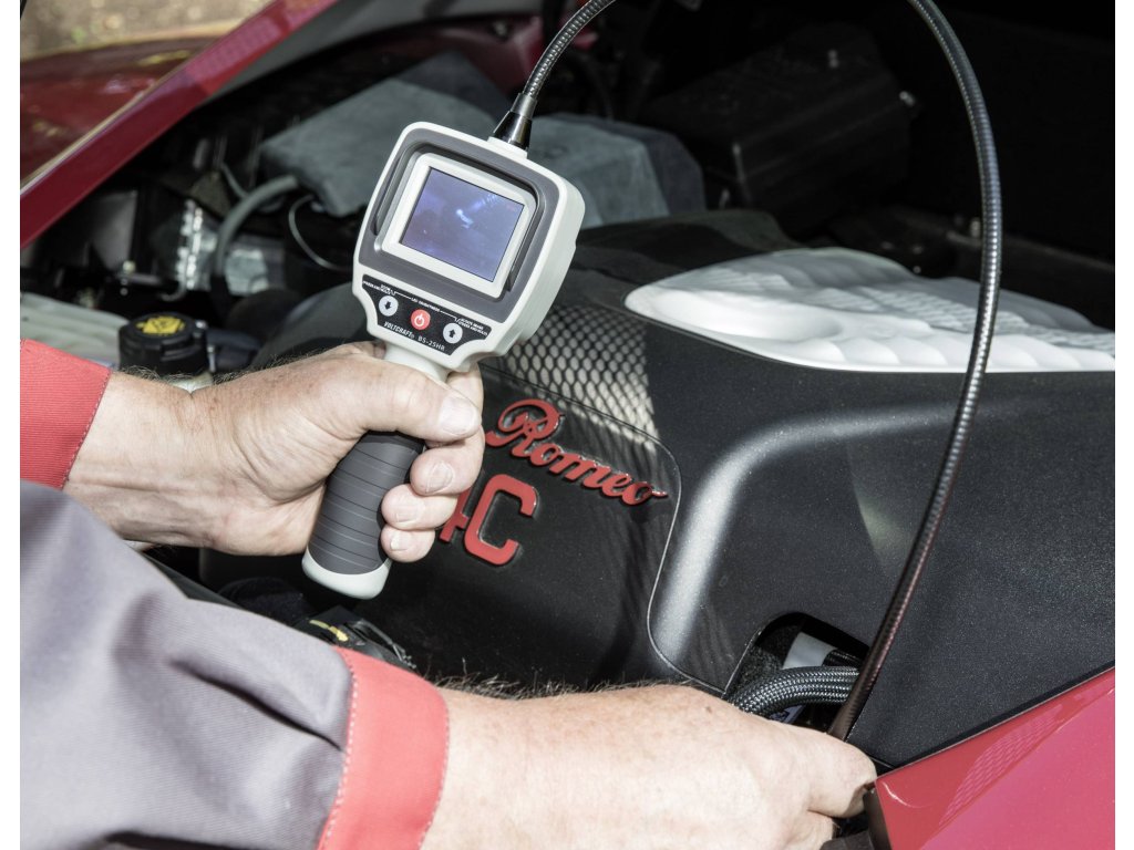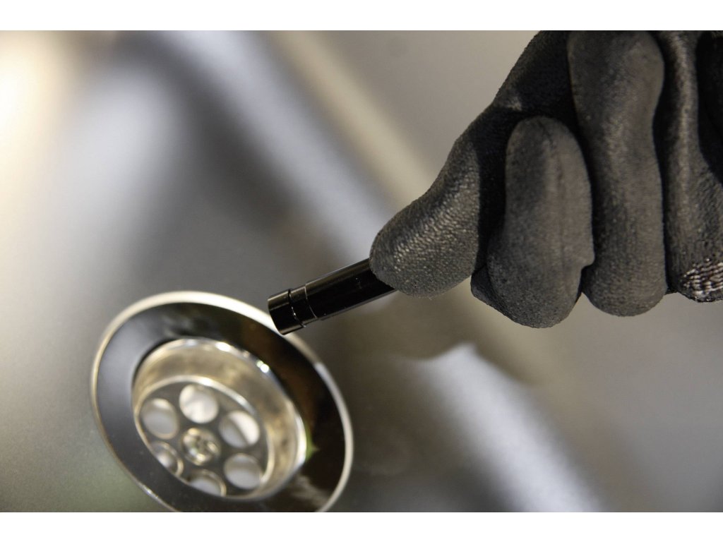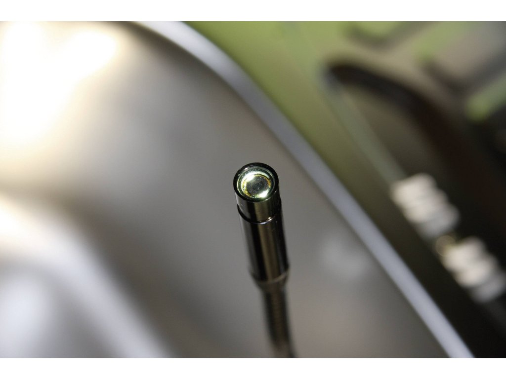 Flexibilní husí krk o délce 88 cm · Vodotěsná kamerová sonda o Ø 8 mm · Stmívatelné světlo kamery se 4 LED · Barevný LCD monitor · Funkce zoom (x1/x1,5/x2) · Obraz na monitoru otočný o 180 ° · Protiskluzová rukojeť