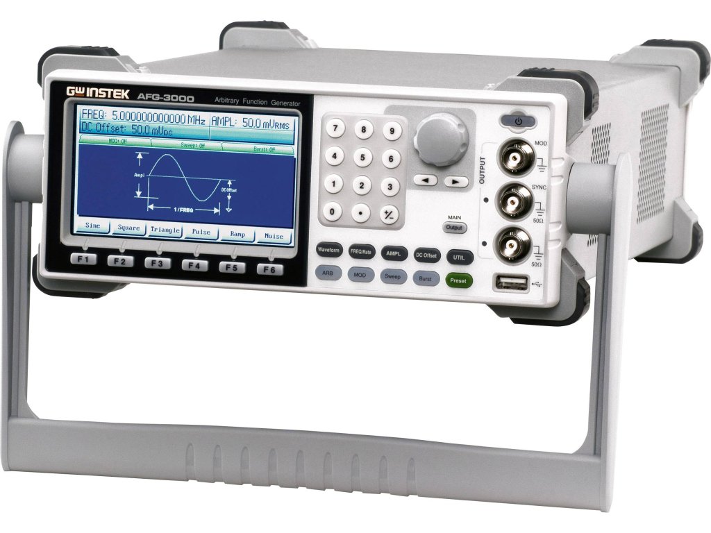 Generátor funkcí AFG-3031 s přímým digitálním generováním signálu (DDS) poskytuje šířku pásma 30 MHz. Vybavení obsahuje standardní signály sinus, obdélník, rampa, puls, šum, DC, Sin(x)/x, exponenciální nárůst, exponenciální pokles, negativní rampu a libovolný průběh signálu 200 MSa/s. Navíc jsou k dispozici funkce modulace AM/FM/FSK, Sweep a Burst. Barevný LCD monitor s úhlopříčkou 10,9 cm zobrazuje všechny parametry, nastavení a průběh. USB rozhraní lze použít pro dálkové ovládání počítačem. Arbitrární průběh signálu lze vygenerovat pomocí volně dostupného PC® softwaru a přes USB přenést do generátoru. Ve spojení s pamětí osciloskopů řady GDS-3000 je možné regenerovat měřený digitální signál (DWR).Specifikace: