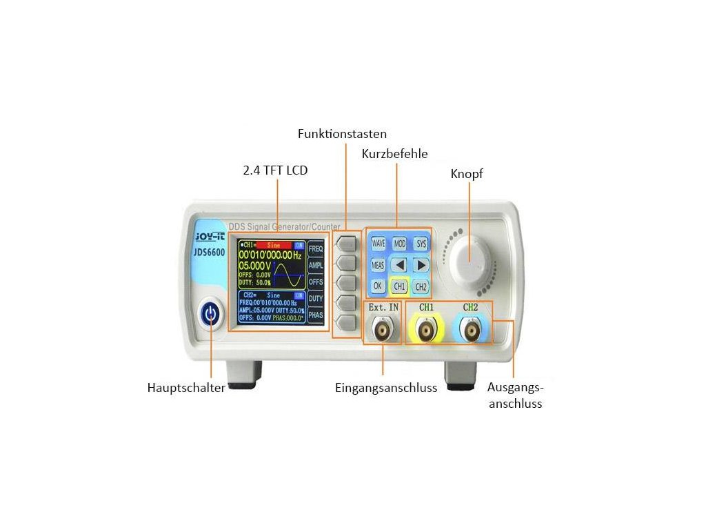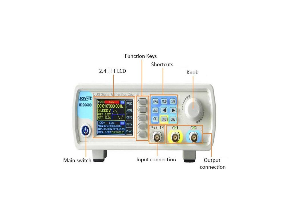 Joy-it JT-JDS6600 Arbitrární generátor funkcí 15 MHz - 0.01 µHz 2kanálový trojúhelník, obdélníkový, signál , sinusový, Lorenzova křivka, arbitrární, pulz, šum
