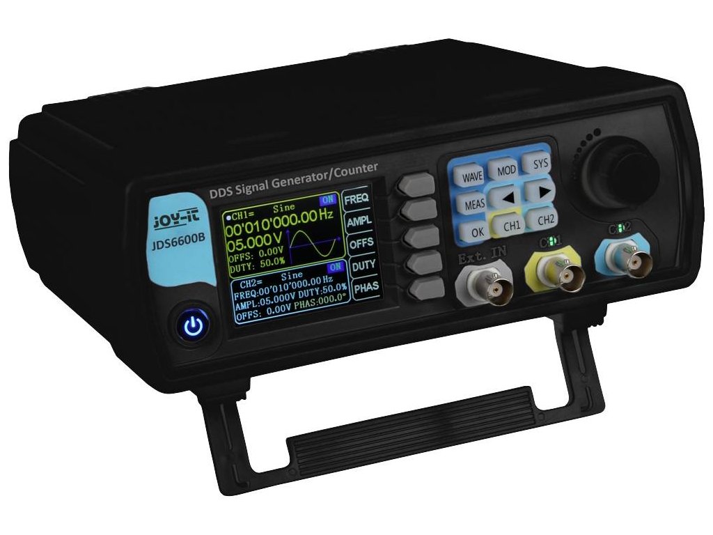 JT 6600 je 2kanálový generátor signálu, který vytváří signály o frekvenci až 60 MHz. Se svými různými tvary průběhů křivek, jako např. sinus, obdélník, trojúhelník, puls, půlvlna, atd., se hodí do všech oblastí měřicí techniky. Navíc je integrován 1kanálový čítač frekvencí. S frekvencí o přesnosti ±20 ppm a stabilitou ±1 ppm/3h nabízí vynikající kvalitu signálu a flexibilitu. Díky 2,4“ (6,1cm) velkému barevnému TFT displeji je navíc zajištěna optimální ovladatelnost, čímž se nabízí nejrůznější možnosti použití.Tento text byl přeložen strojově.