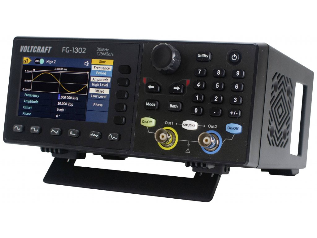Generátor funkcí Voltcraft FG-1302 DDS s 30 MHz, vzorkovací rychlostí 125 MSa/s a 14bit vertikálním rozlišením nabízí 2 nezávislé kanály. Rozsáhlý průběh signálu nabízí sinus, obdélník, impuls, rampa, šum a 150 integrovaných arbitrárních průběhů.Tento text byl přeložen strojově.