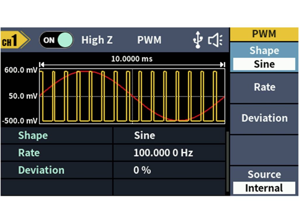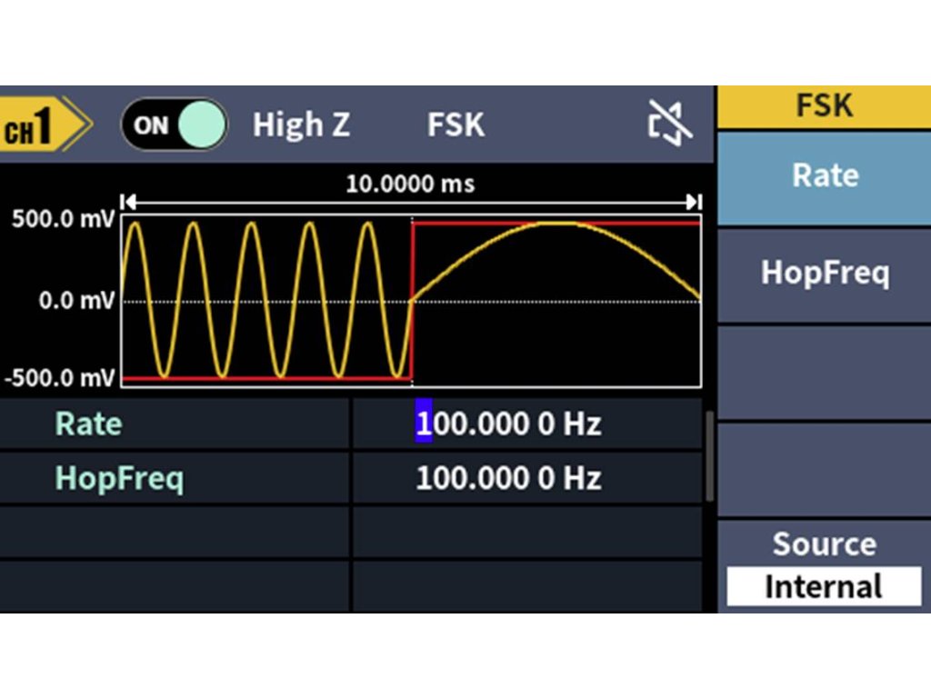 Rozsáhlý průběh signálu: Sinus, obdélník, impuls, rampa, šum a 150 integrovaných arbitrárních průběhůDélka hřídele: 2 PTS až 100 kMODULACE: AM, DSB-AM, FM, PM, ASK, FSK, PSK, BPSK, QPSK, 3FSK, 4FSK, OSK, PWM, SUM, SWEEP, BURSTFrekvenční rozsah: 100 MHz - 100 MHzRozlišení frekvenčního čítače: 7-místnýVstup: Vstup čítače frekvence, externí modulační vstup, externí trigger vstupVýstup: SyncKomunikační rozhraní: Rozhraní USB Host, USB zařízení