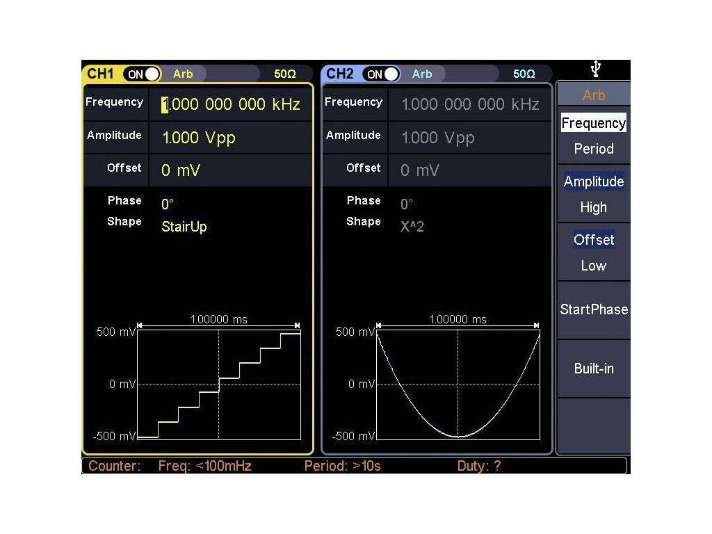 | Frekvenční rozsah (ARB): | 1 μHz - 50 MHz |