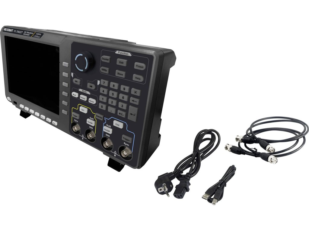2kanálový arbitrární funkční generátor FG-30000T s dotykovým displejem. Tento arbitrární generátor funkcí produkuje díky svému digitálnímu generování signálu (technologie DDS) stabilní, přesné a čisté výstupní signály s šířkou pásma 80 MHz, vzorkováním v reálném času 1,25 GS/s (max.) a frekvenčním rozlišením 1 μHz. Generátor zvládá 6 základních signalizačních skupin (sinus, obdélník, rampa, šum a harmonické vlny) a 152 integrovaných arbitrárních signálů (1 μHz - 50 MHz) s vertikálním rozlišením 14 bitů Kromě toho nabízí mnoho možností modulace, mimo jiné AM, FM, FSK, 3FSK, PSK, OSK, ASK, BPSK, PWM, Sweep a Burst. Všechny parametry signálu a nastavení se zobrazují na 8" (20,32 cm) TFT LCD displeji s 800 x 600 pixely, ve snadno ovladatelném grafickém rozhraní.Specifikace:
