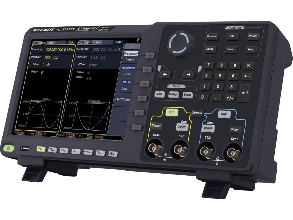 VOLTCRAFT FG-31602T Arbitrární generátor funkcí 1 µHz - 160 MHz 2kanálový arbitrární, šum, pulz, obdélníkový, sinusový, trojúhelník