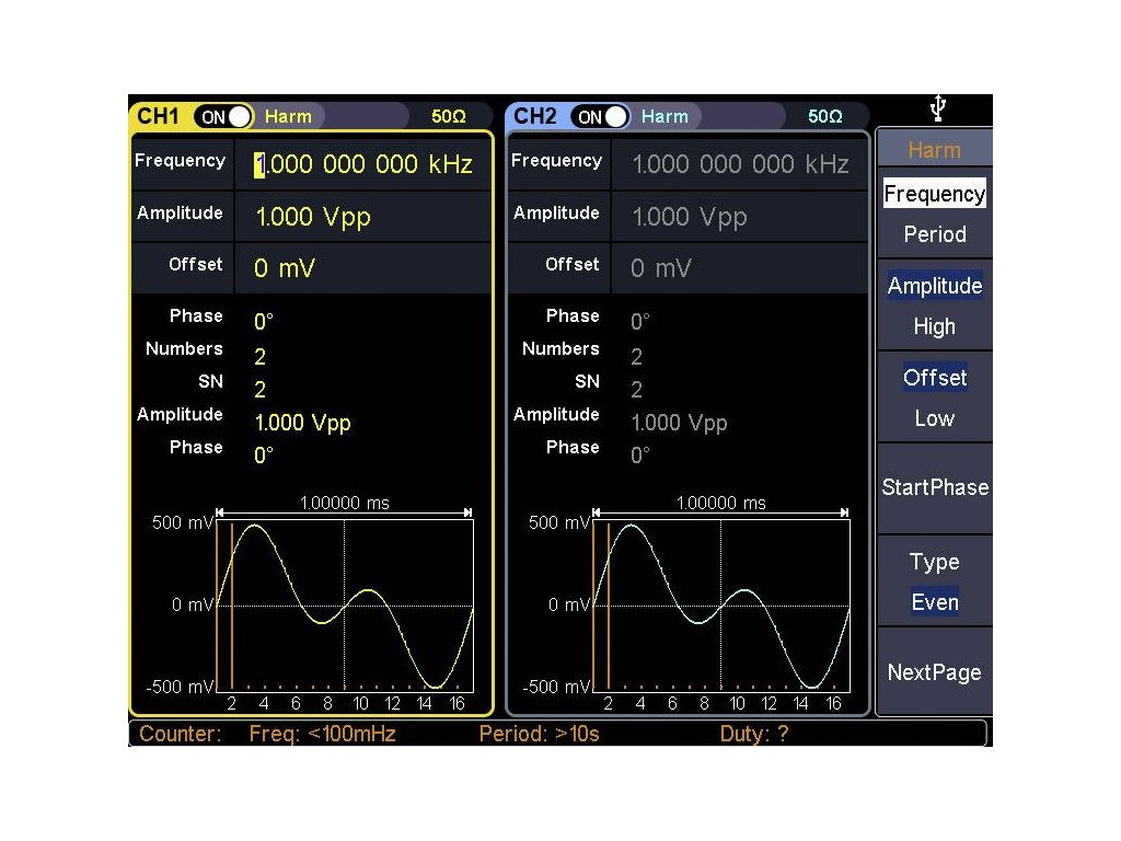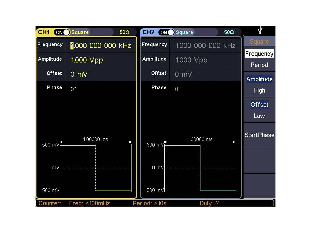 | Frekvenční rozsah (obdélník): | 1 μHz - 50 MHz |