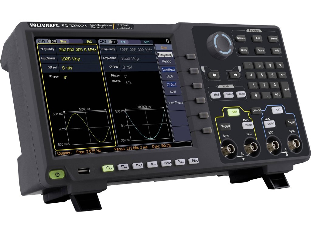 VOLTCRAFT FG-32502T Arbitrární generátor funkcí 1 µHz - 250 MHz 2kanálový arbitrární, šum, pulz, obdélníkový, sinusový, trojúhelník