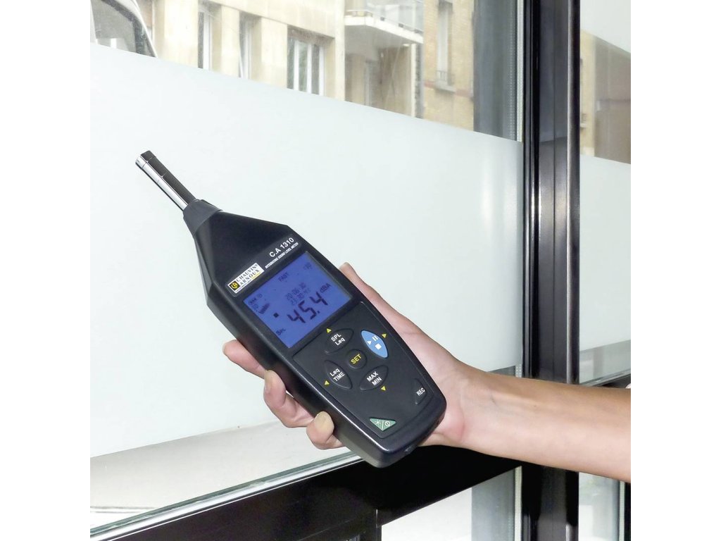 Měřič hladiny zvuku umožňuje měření hladin akustického tlaku od 30 do 130 dB a záznam s kapacitou až 64.000 měřicích bodů.