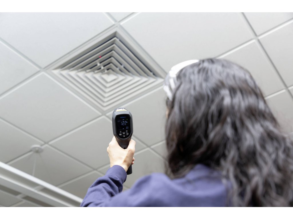 Umožňuje bezdotykové měření teploty a poměr vzdálenosti od 20:1. Tak lze z bezpečné vzdálenosti měřit menší cíle