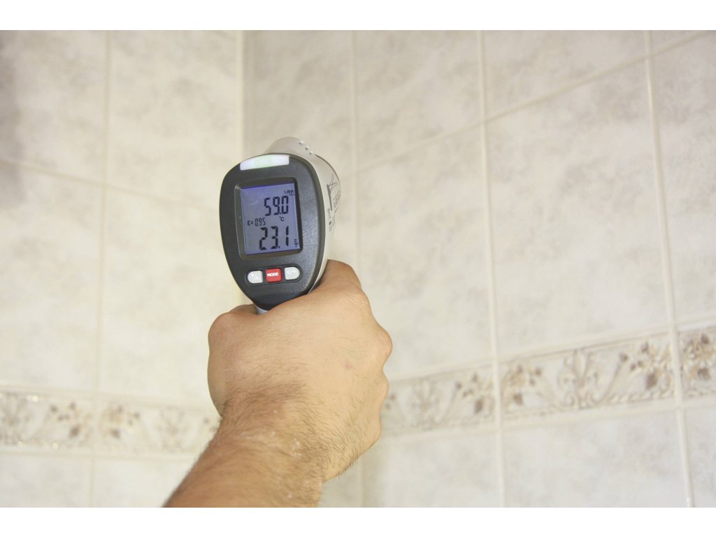 Identifikujte ve svých obytných místnostech místa ohrožená plísní dříve, než bude napadení plísní viditelné. Díky spojení IR teploměru s integrovaným vlhkoměrem lze přístrojem IR-SCAN-350RH měřit rosný bod. Při poklesu pod tuto hodnotu hrozí nebezpečí napadení plísní. Při zapnutí přístroje je měřena teplota a vlhkost v místnosti. Takto zjištěný rosný bod nyní slouží jako referenční údaj pro IR měření v místech potenciálního nebezpečí plísní. Přístroj vám poté ukáže, kde je třeba v důsledku závad izolace zabránit vzniku vlhkých skvrn.Specifikace: