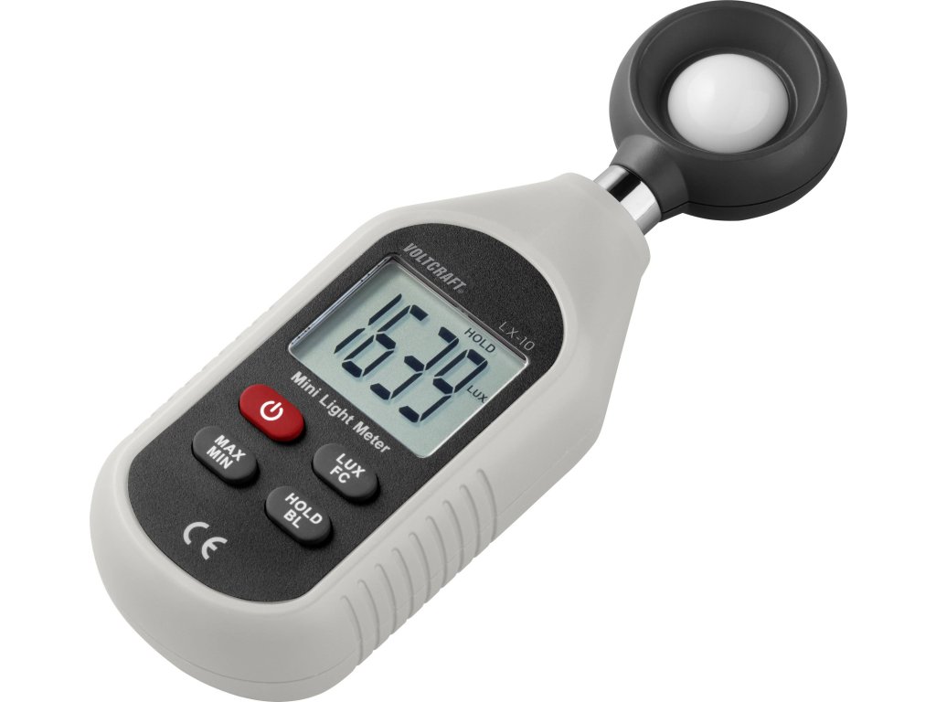 Luxmetr Voltcraft LX-10 lze použít všude tam, kde je důležité přesné měření intenzity světla, přičemž takových oblastí použití stále přibývá. V komerční i průmyslové oblasti hraje měření intenzity světla důležitou roli. Především pomáhá zjistit, zda je k dispozici dostatek světla na pracovišti, na místě pro prezentaci produktu, při práci s malými díly nebo v zahradnictví.Specifikace: