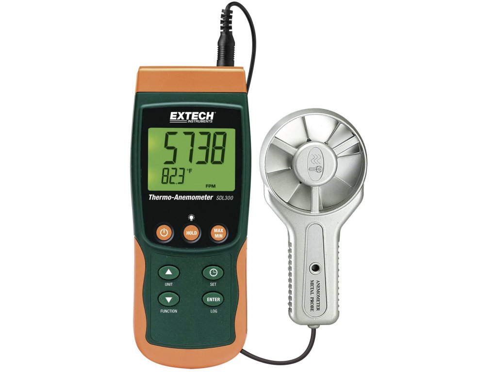 Anemometr s teploměrem umožňuje měřit rychlost a teplotu vzduchu. Pomocí přídavného tepelného čidla lze navíc měřit i vysoké teploty. Integrovaný datalogger umožňuje ukládání dokumentace na SD kartu a její pozdější procházení na počítači. Ideální pro měření tepelných, klimatizačních a ventilačních systémů nebo pro měření životního prostředí při plánování staveb apod.Specifikace: