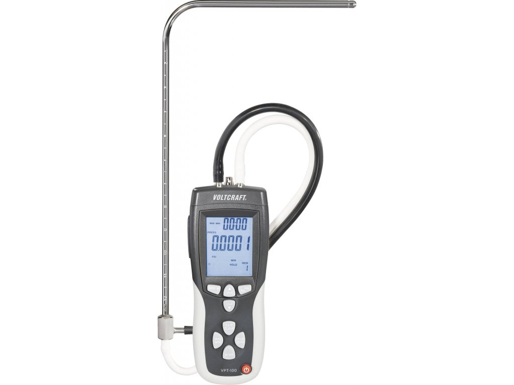 VPT-100 umožňuje měření tlaku vzduchu a rozdílového tlaku nebo s Prandtl-pitotovou trubicí měření průtoku a rychlosti větru. S těmito parametry je vhodný pro kontrolu ventilačních a klimatizačních systémů. Každá Prandtl-pitotova turbice je kombinací pitotovy trubice a statického tlakového čidla a umožňuje přímé měření zpětného tlaku.Specifikace: