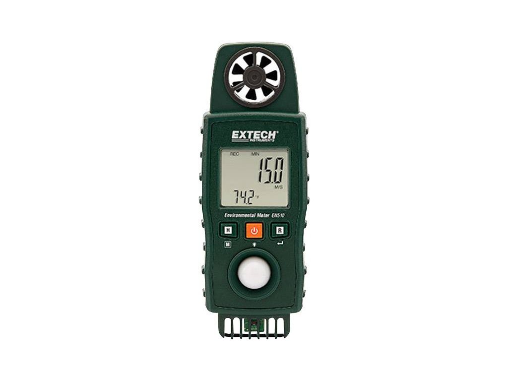 EN510 měří rychlost vzduchu s teplotou vzduchu, průtokem vzduchu (objem), světlem, relativní vlhkostí v procentech s teplotou vzduchu, rosným bodem, vlhkou teplotou žárovky, teplotou typu K (externí sonda), teplotou indexu tepla a snímanou teplotou. Podsvícený LCD displej má primární a sekundární displej a řadu intuitivních stavových indikátorů.Specifikace: