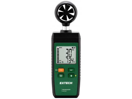 Ruční anemometr slouží k měření rychlosti větru a objemového průtoku vzduchu Rychlost lze zobrazit na displeji v pěti různých jednotkách (m/s, ft/min, km/h, mp/h, uzly). Kromě toho je zaznamenávána také průměrná a maximální rychlost větru, která je následně zobrazena na podsvíceném dispeji.Specifikace: