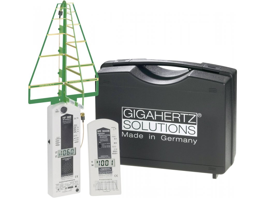 Přístroje tohoto měřícího kufru spojují jednoduchou obsluhu „laických přístrojů“ s dodatečnou možností analýzy profi přístrojů. Tak disponuje HF38B měřícím rozsahem, funkcí Peak Hold a anténou profi řady. ME3840B je vybaven přepínatelným frekvenčním filtrem k rozlišení harmonického a síťového proudu jakož i harmonických vln.Obsah balení: