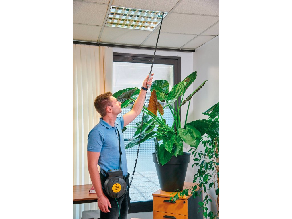 1 naviják vedení včetně měřicího kabelu o délce 30 m (PVC)·1 černý spirálový kabel (PVC)·1 zelená krokosvorka·1x černý zkušební hrot·1x zelený měřicí kabel (PVC - 0,50 m)·1x elastický poutko na ruku pro upevnění krytu na zápěstí·2 popruhy (na opasek a rameno)·4 baterie 1,5 v LR06