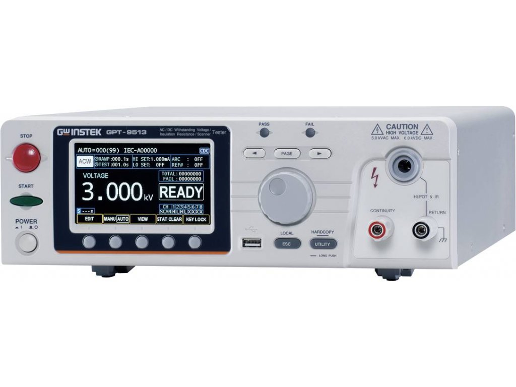 GW Instek představuje nový vícekanálový tester napětí - série GPT-9500. Tato řada obsahuje 2 modely a každý model je vybaven integrovaným 8-kanálovým skenerem. Tato řada splňuje bezpečnostní předpisy: IEC, EN, UL, CSA, GB, JIS a další bezpečnostní předpisy. Tato série se zaměřuje na potřeby hlavních zkušebních předmětů obecných elektronických součástí nebo součástí vinutí při rutinních testech.Série GPT-9500 je tříkanálový vícekanálový testovací přístroj, který nabízí odolnost střídavého napětí (max. 5 kV), schopnost stejnosměrného napětí (max. 6 kV) a izolační odpor (max. 1000 v). Design série odpovídá nejnovějším požadavkům normy IEC-61010-2-034 a je založen na výstupní platformě od AC 150VA. Stav 8 kanálů GPT-9513 může být v závislosti na testovacích požadavcích nastaven na H, L nebo X, obzvláště vhodný pro vinutí, jako např. transformátory, pro provádění křížových testů z více bodů jednotlivých komponentů. Stav 8 kanálů GPT-9503 nabízí pouze nastavení H nebo X, což was general komponenty jako pasivní komponenty lépe hodí pro vysokonapěťové zkoušky mezi dvěma body.