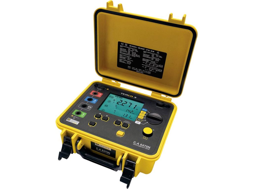 U tohoto ergonomické, kompletní a s vysokou přesností měřených zařízením můžete všechna měření přes v ovládací panel integrovaného otočného spínače. Odolné a nárazuvzdornému C.A 6470N je kompaktní a pro použití na místě. Připojení uzemňovače byl díky barevnému označení připojovací svorky. Termokamery C.A 6470N má podsvícený LCD displej a jeden akumulátor, který pomocí externího nebo nechat cigaret je možné dobíjet vozidla připojeného nabíječka. Je vybaven funkcí pro automatické nebo manuální ukládání naměřených hodnot.Přes USB výstup lze pomocí softwaru Ground tester dat pro zpracování přenést do počítače.