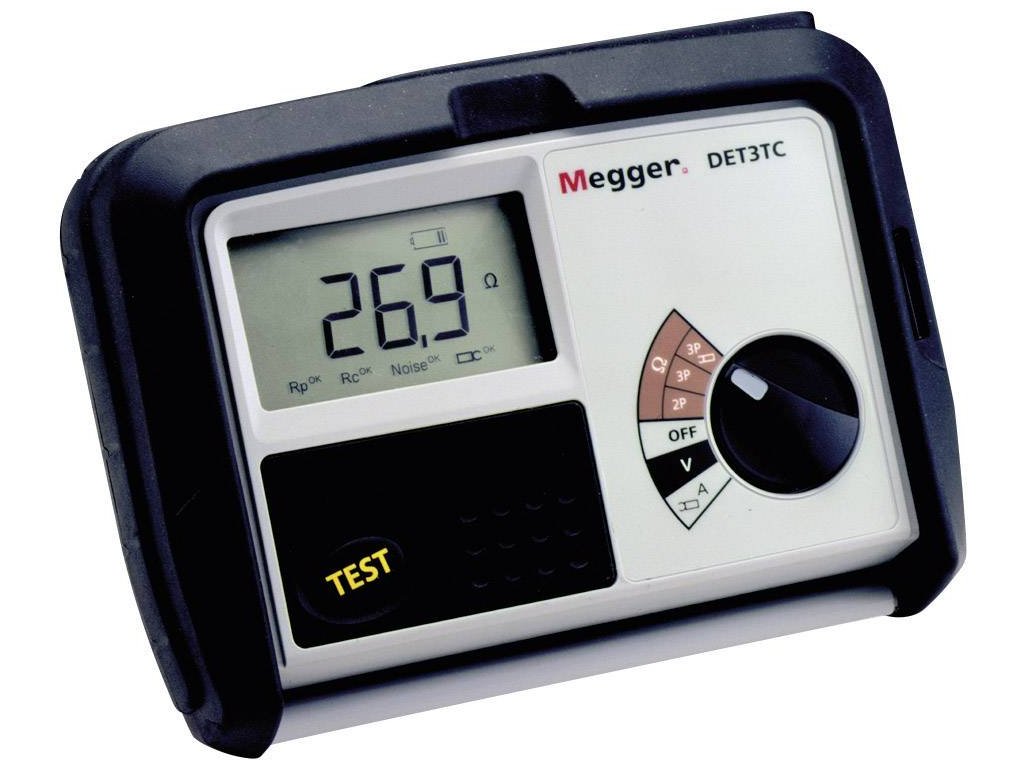 Nové měřiče uzemnění řady DET3 od Megger nabízejí jedinečné řešení pro měření uzemnění. Kompletní sada měřicího přístroje, měřicích kabelů, promáhaných dodává se v odolném skořepinovém kufříku - vše, co was potřebujete pro vaše měření. Pouzdro zemnícího měřicího přístroje má stupeň krytí IP54 a je tak vhodné pro venkovní použití. Měřicí přístroj je uživatelsky přívětivý: Velký volicí spínač umožňuje výběr mezi 2- nebo 3-vodičovým měřením uzemnění. Díky velkému a snadno čitelnému LCD displeji a velkému startovacímu tlačítku je přístroj obzvláště vhodný pro měření uzemnění ve venkovním prostředí. Přístroje zkoušejí automaticky sondy a pomocný odpor a zobrazují stav na LCD displeji. Přístroj obsahuje dále voltmetr pro měření zemnícího napětí, maximální měřené napětí lze nastavit na 25 nebo 50 V. U měřiče uzemnění DET3TC lze pomocí volitelných proudových kleští provádět selektivní měření uzemnění (TYP), což umožňuje kontrolu jednotlivých zemnících, aniž by je bylo nutné ji odpojit, takže zemní systém zůstane během měření neporušený.Specifikace: