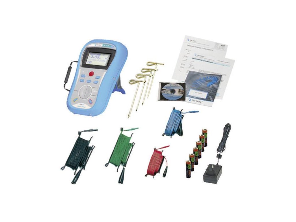 2 testovací vodiče uzemnění 4,5 m (modrá/červená) · 2 testovací vodiče uzemnění 20 m (zelená/černá), 4 zemní sondy · Napájecí zdroj · 6 NiMH akumulátorů AA · Měkké poutko na ruku · . · Příručka měření "měření na elektrických zařízeních v teorii a praxi" a návod na CD · . · Osvědčení o kalibraci ISO první kalibraci.
