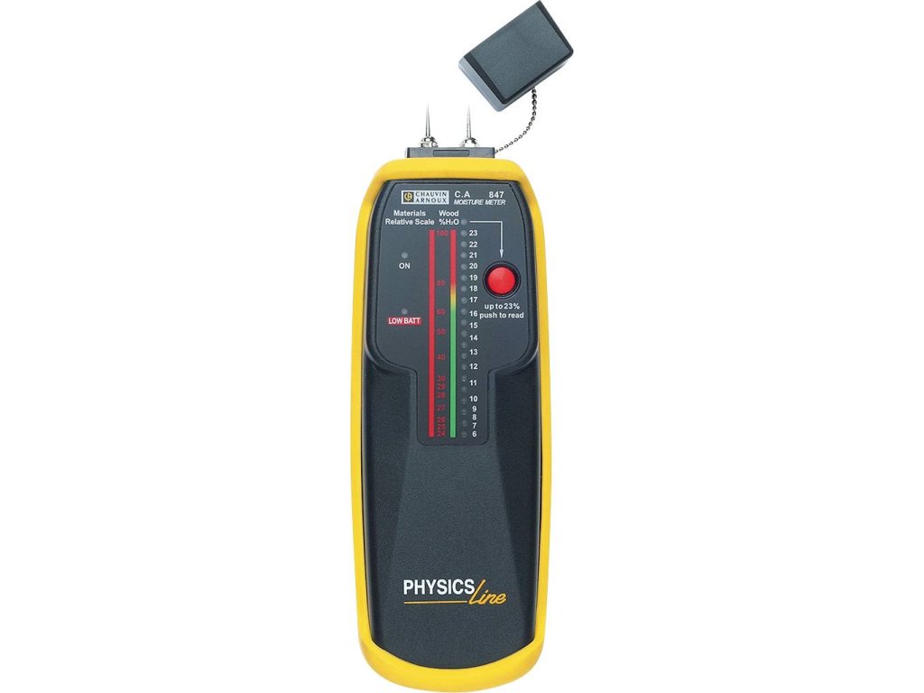 Měřič vlhkosti materiálu C.A 847 řady Physics Line má kompaktní a odolný kryt díky nárazuvzdornému obalu. Měří obsah vlhkosti stavebních materiálů, jako je sádra, dřevo, omítka atd. v rozsahu mezi 6 a 100 %.Specifikace: