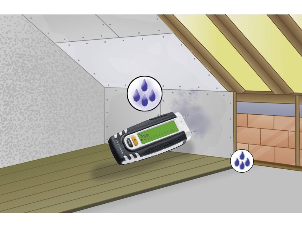 Rychlé zaměření vlhkosti: v index-režimu lze díky porovnávacímu měření pomocí neutrální stupnice stanovit zvyšující nebo snižující se vlhkost