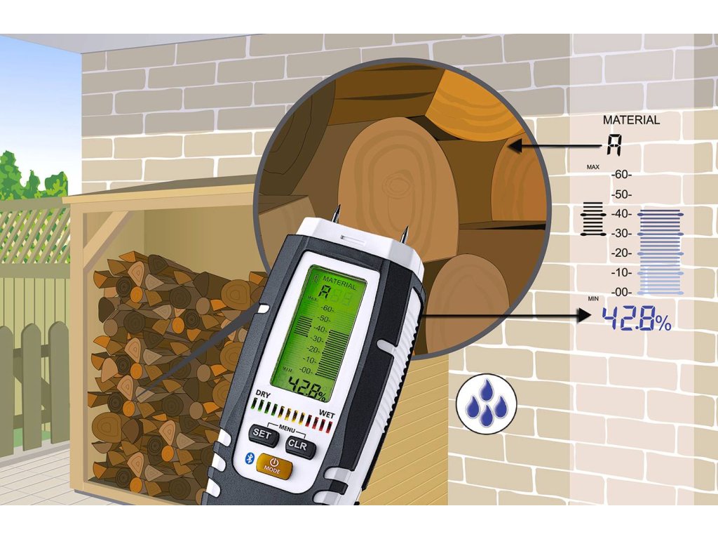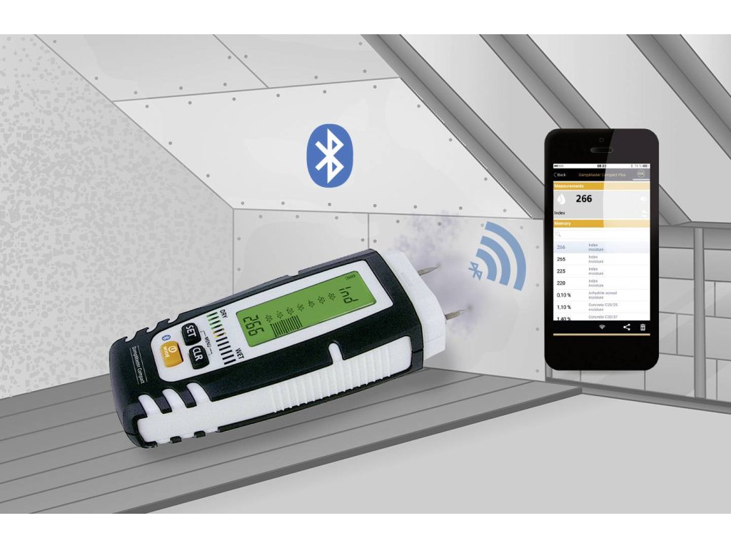 Profesionální přístroj pro měření vlhkosti dřeva a stavebních materiálů s Bluetooth rozhraním pro přenos naměřených dat.Specifikace: