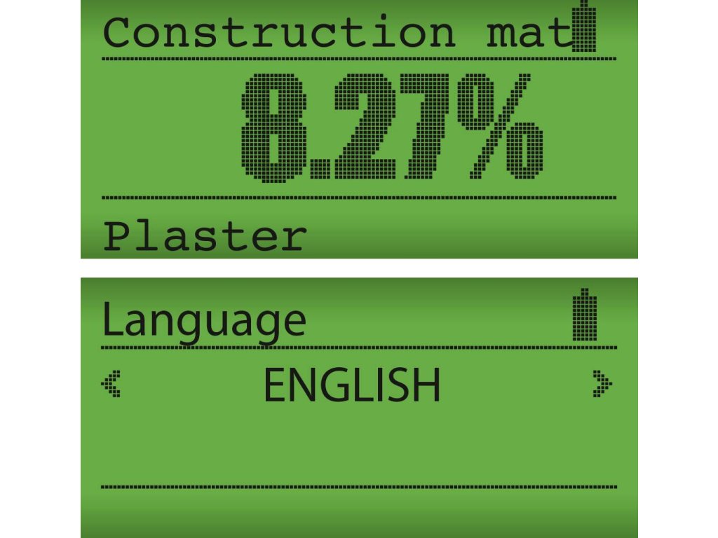 Rozhraní Bluetooth · Podsvícený bodový maticový displej · 12místný LED ukazatel mokro/sucho · 62 volitelných charakteristik materiálů: 56 druhů dřeva a 6 druhů stavebních materiálů · Funkce Auto Hold · Alarm mokra.