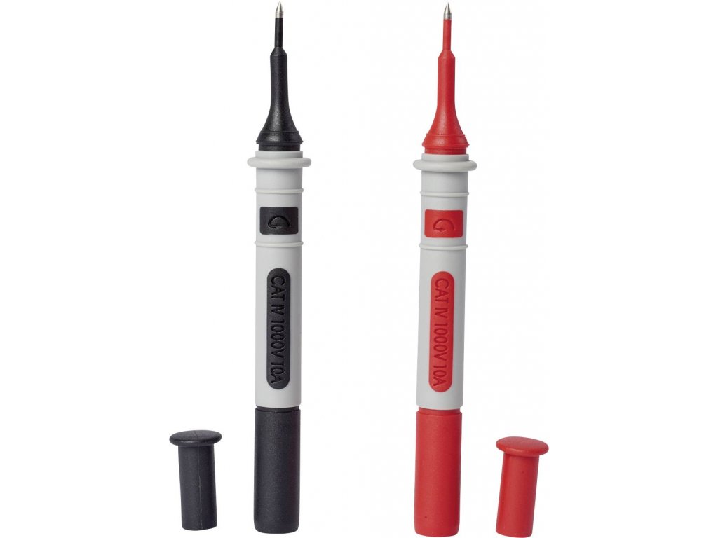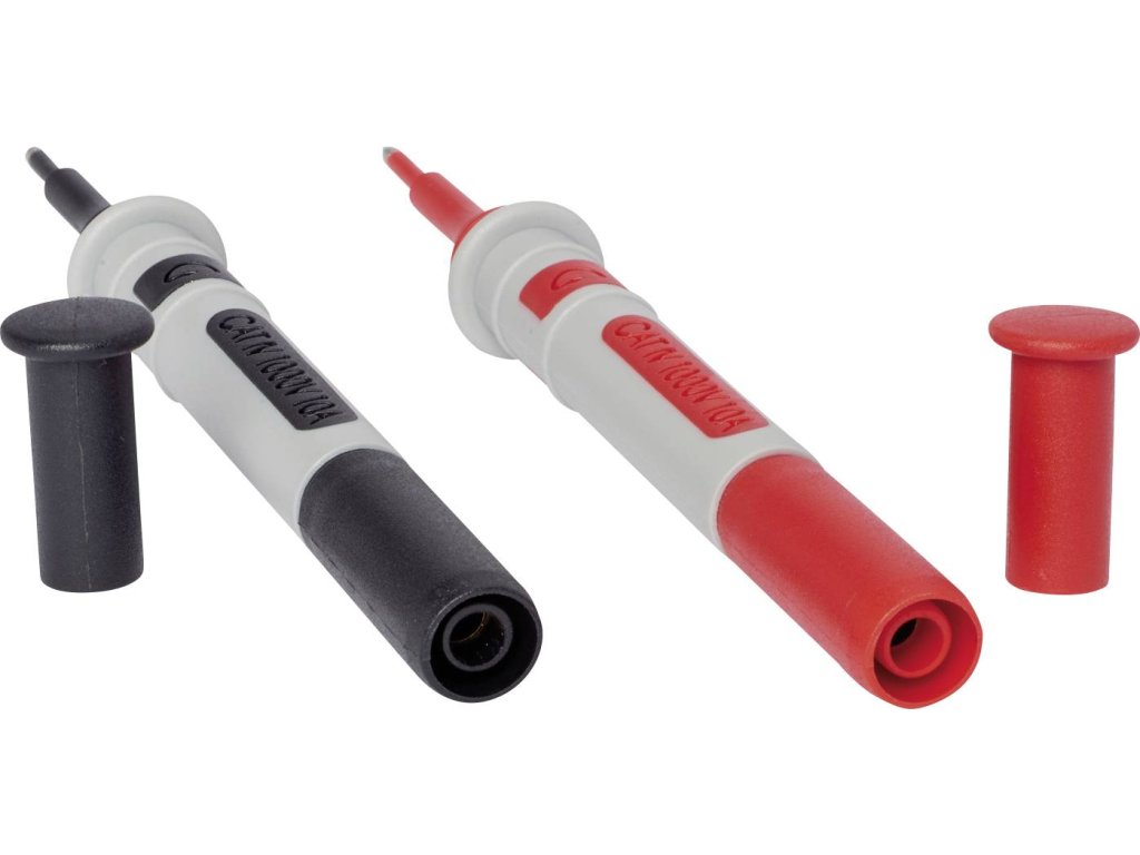 Tyto zkušební hroty byly vyvinuty zejména pro použití k měření modulárních řadových svorek pro DIN lišty.Díky velmi tenkému tvaru hrotu lze vytvořit ideální kontakt pro měření. Jsou vhodné pro instalaci až Cat IV 1000 V.