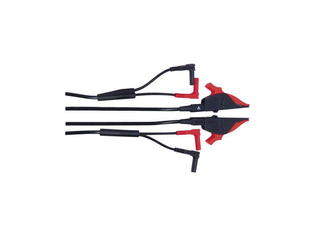KC4: Kelvinových svorek (1 Set = 2 ks) pro 4pólové připojení nízkoohmových testovacích objektů, délka vedení 120 cm, kleště pro konektory na měřící objekty až 30 mm Øje k klipy spojují nízkoohmové rezistory (např. kontakt odporů, bočníků, ...) s měřič odporu v Vierpoltechnik. Tím se odpor kompenzuje. KC4 se skládá z 1 pár svorek.