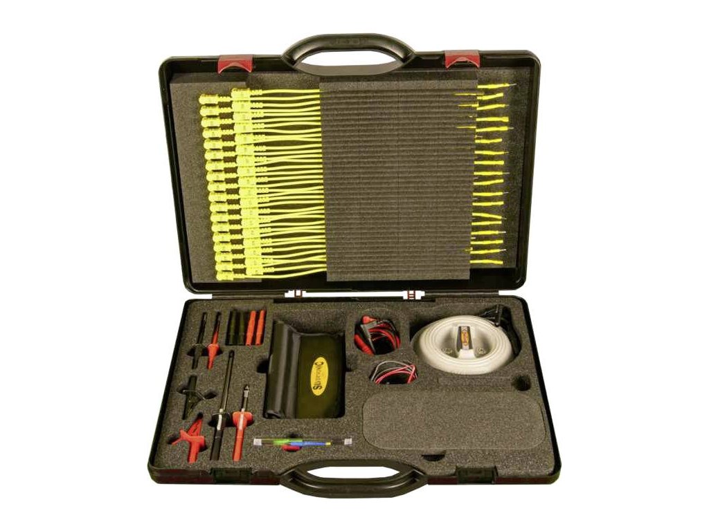 1 kufr z tvrdé skořepiny černá, velký sada flexibilní vedení adaptérů (teplotně odolná silikonová kabel s 1x 4 mm, úhlová zástrčka a 1x různými Automotive plochých a kulatých spojkami, vždy zástrčka/zásuvka, 35 cm dlouhý)