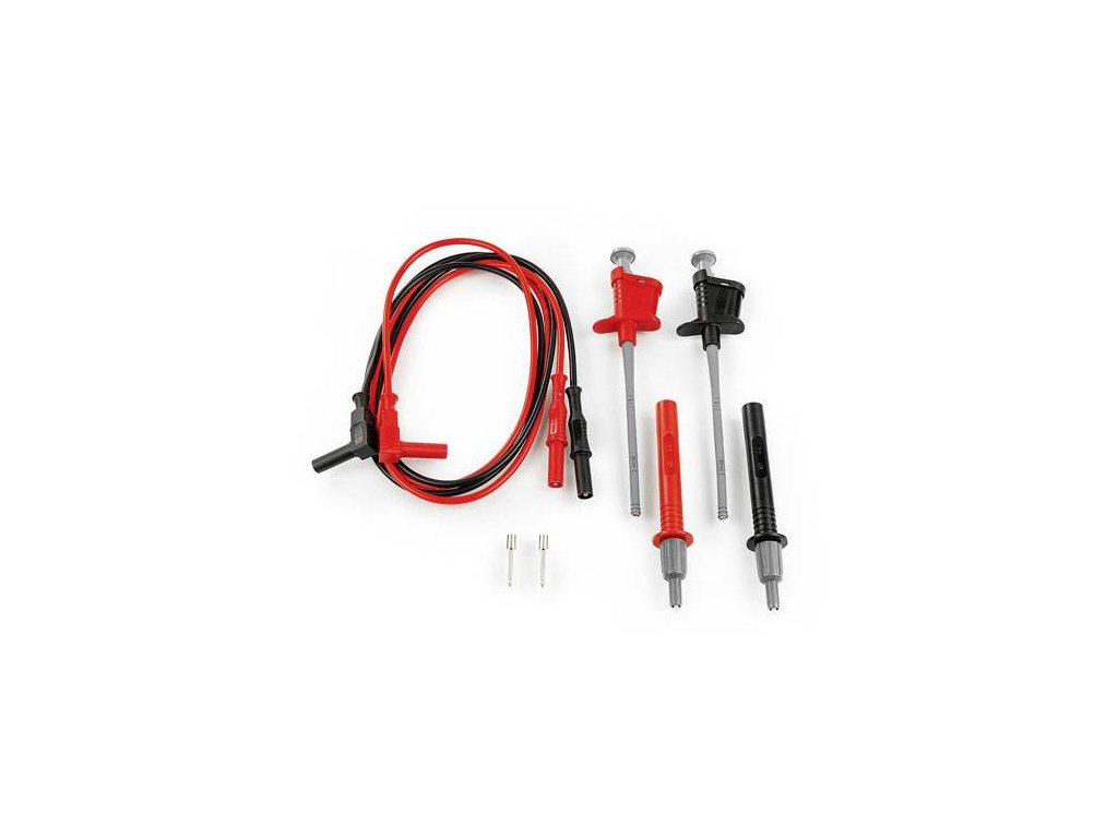 Sada měřicích kabelů se skládá z: 2 měřicí kabely Ø 4 mm zásuvka, 2 zkušební hroty, 2 krokosvorky flexibilníTento text byl přeložen strojově.