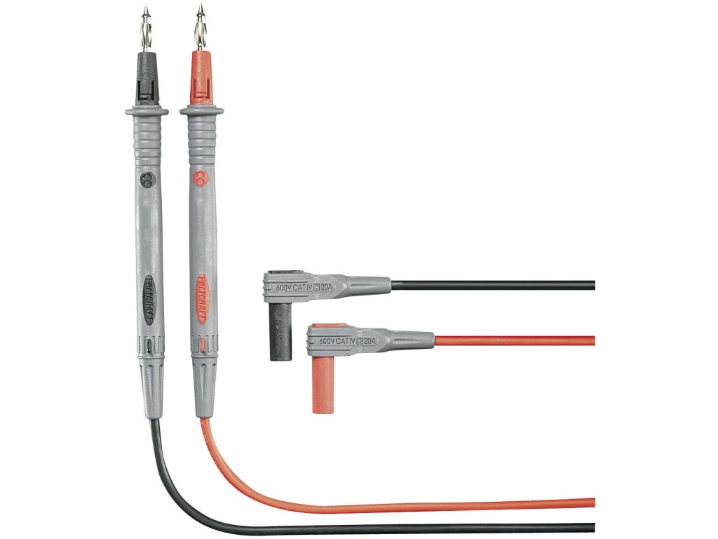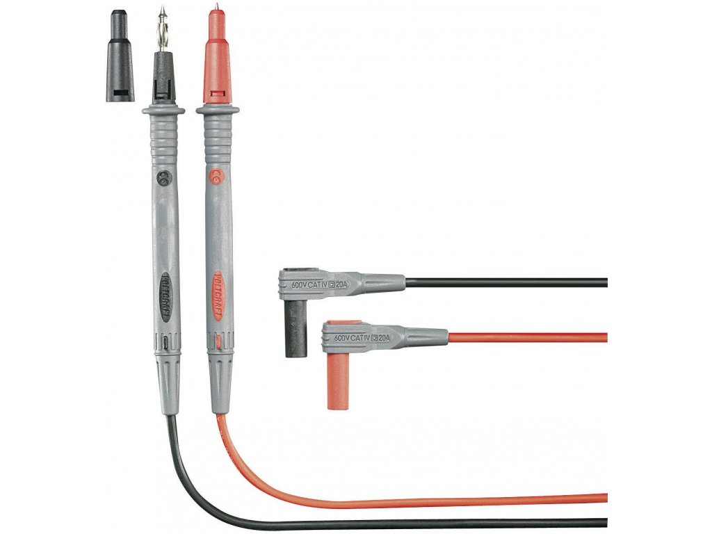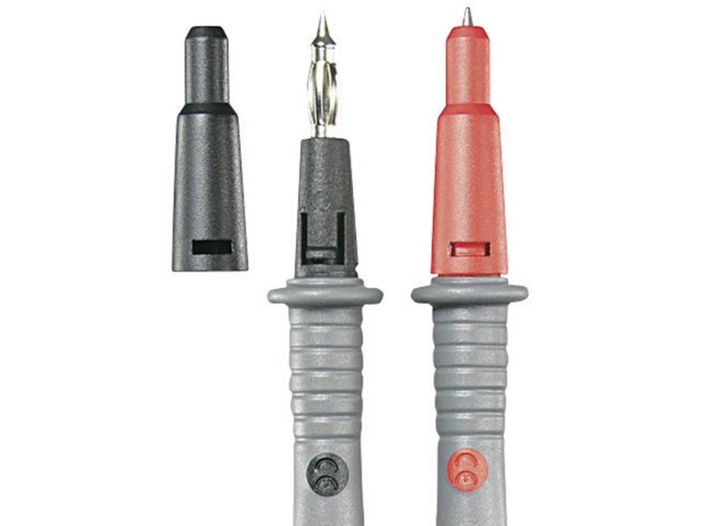 Velmi flexibilní měřicí kabely se silikonovou izolací, ideální pro měření multimetry. Pro měření v kategorii II do 1000 V lze ze zkušebních hrotů odstranit ochranné krytky. Takto uvolněné pružné zástrčky 4 mm umožňují spolehlivý kontakt v zásuvkách a laboratorních měřicích zdířkách. Díky dvoubarevné dvojité izolaci lze okamžitě rozpoznat případné poškození měřicích vodičů.Vlastnosti: