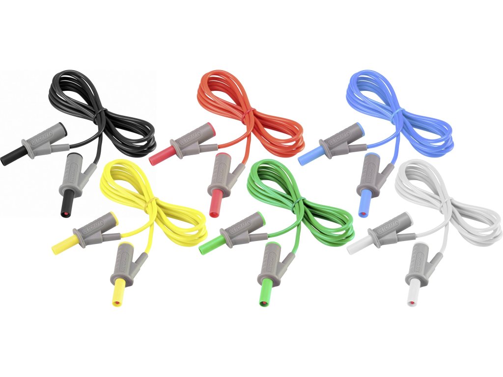 2x měřicí kabel, černý·2x měřicí vodič, červený·2x měřicí kabel modrý·2x měřicí kabel žlutá·2x měřicí kabel zelená·2x měřicí kabel bílá