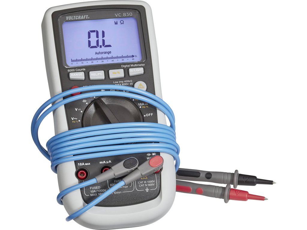 1x měřicí hrot červený·1x měřicí hrot černý·2x bezpečnostní měřicí kabel modrý