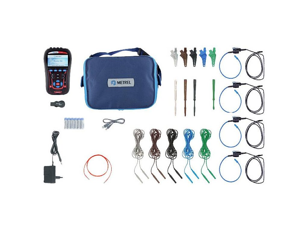 Zkušební přístroj Master Q41-fázové flexibilní proudové kleště 3000 / 300 / 30 a (a 1502), 4 ksZkušební hrot (hnědý, černý, šedý, zelený, modrý), 5 kusůKrokosvorka (hnědá, černá, šedá, zelená, modrá), 5 kusůMěřicí kabel napětí (hnědý, černý, šedý, zelený, modrý), 5 kusůNálepka pro barevné označeníTeplotní senzorPaměťová karta microSD 8,0 GBPC software PowerView 3Patch kabel USB a EthernetSíťový adaptérAkumulátor NiMH 1,2 v, 6 kusůPolstrovaná brašna.Kalibrační protokol