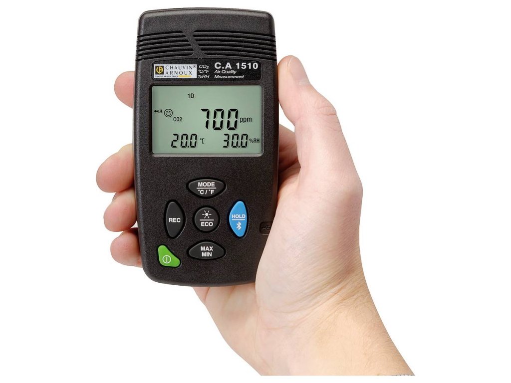 Přístroj C.A 1510 měří obsah CO2 podle nejnovějších platných předpisů upravujících hodnocení ventilačních systémů a měření znečišťujících látek v ovzduší ve veřejných prostorách. Jakmile koncentrace CO2 ve vzduchu v místnosti dosáhne průměrné hodnoty 1 000 ppm nebo maximální hodnoty 1700 ppm, vydá C.A 1510 vizuální a zvukovou výstrahu.Specifikace:
