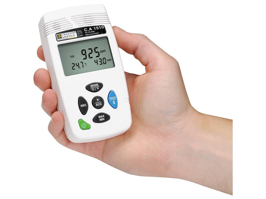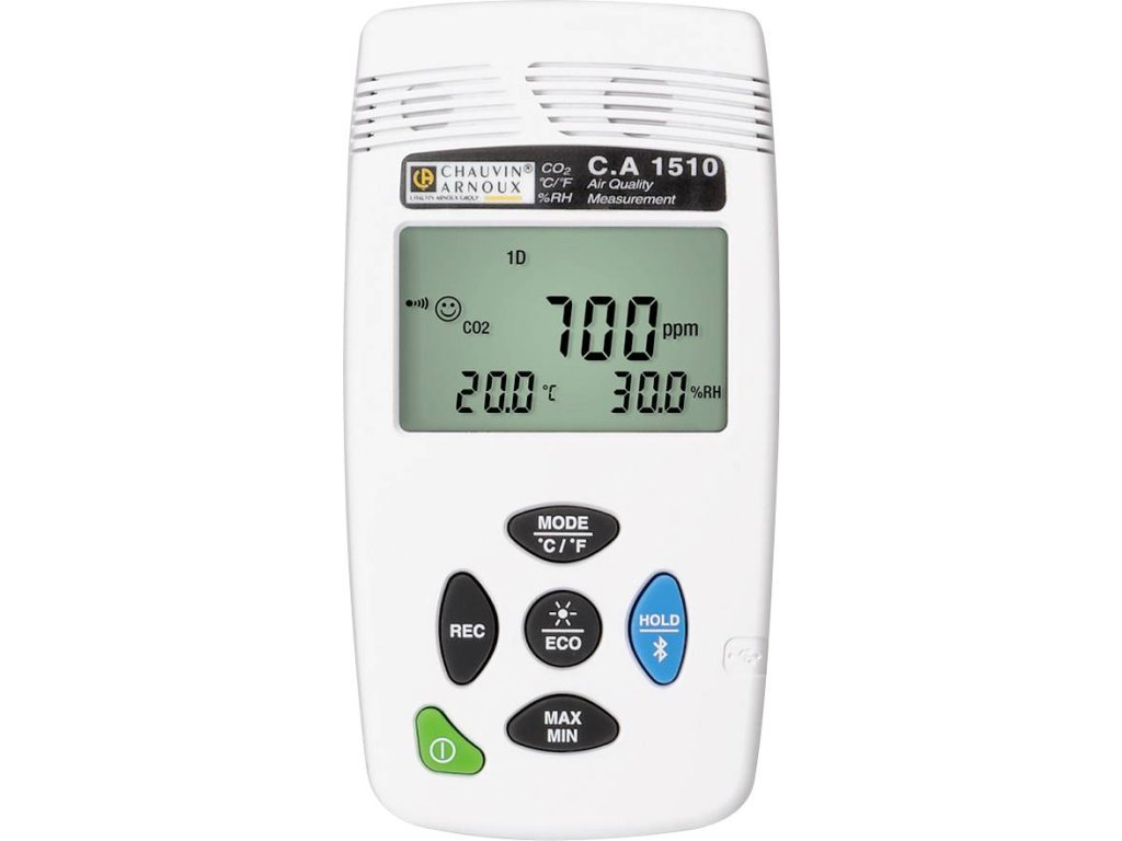 Přístroj C.A 1510 měří obsah CO2 podle nejnovějších platných předpisů upravujících hodnocení ventilačních systémů a měření znečišťujících látek v ovzduší ve veřejných prostorách. Jakmile koncentrace CO2 ve vzduchu v místnosti dosáhne průměrné hodnoty 1 000 ppm nebo maximální hodnoty 1700 ppm, vydá C.A 1510 vizuální a zvukovou výstrahu.Specifikace:
