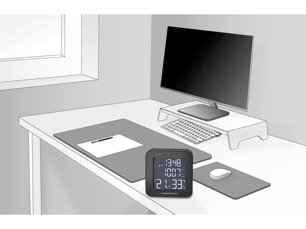 Uhlíkový měřicí přístroj představuje cenný příspěvek k vytvoření zdravého klimatu v místnosti, což je důležitý ukazatel možné koncentrace virů. Čím vyšší je kvalita vzduchu, tím větší je riziko šíření, a tedy infekce viry. AIRmonitor COBYLBYC má švýcarský přesný senzor s NDIR technologií Sensirion SCD30 a poskytuje trvale spolehlivé výsledky. Klasifikace vzduchu v místnosti podle DIN EN 13779 se provádí v stupních vysoká, střední, mírná a nízká kvalita, zobrazena snadno srozumitelným symbolem. V obou nejnižších stupních je vysíláno doporučení ohledně ventilace ve formě optických a akustických signálů. Uživatel je kromě toho neustále informován o čase, teplotě a vlhkosti vzduchu.Tento text byl přeložen strojově.
