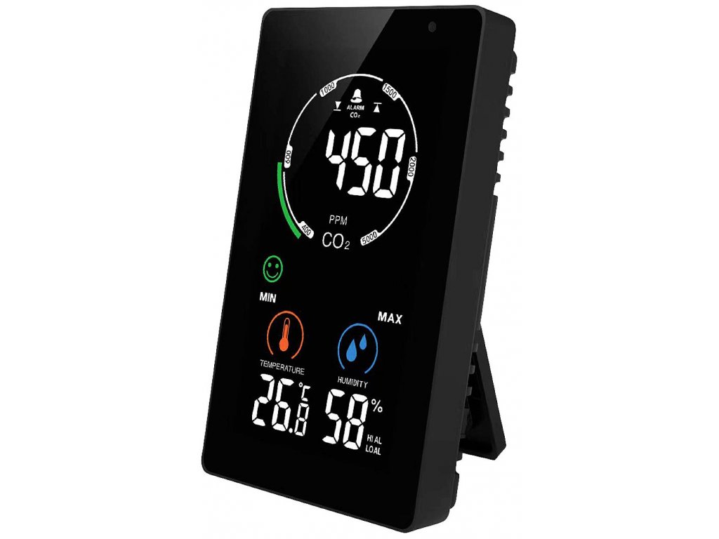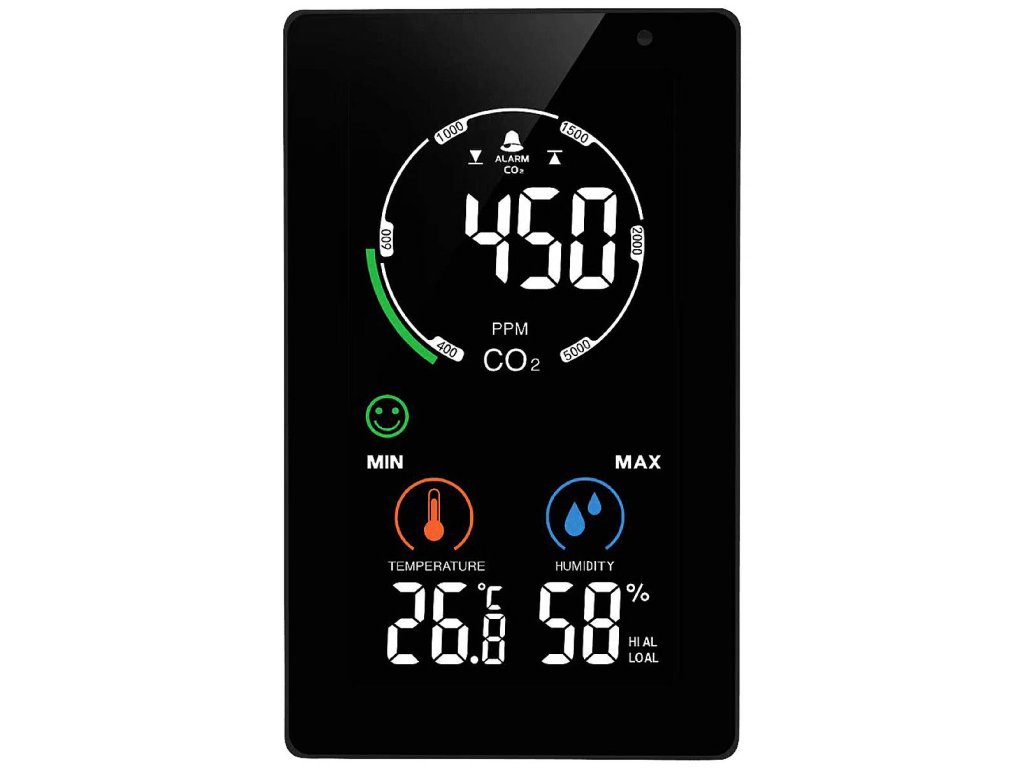 Existují dobré důvody pro monitorování kvality ovzduší v kanceláři nebo v dílně i v soukromí: Příliš mnoho CO2 snižuje schopnost koncentrace a snižuje tak kreativitu a produktivitu, zatímco nadměrné větrání vede k plýtvání energií. NDIR senzor digitálního přístroje pro měření CO2 měří množství infračerveného záření absorbovaného molekulami CO2 a vypočítává z toho podíl škodlivého plynu ve vzduchu. Tím se vyjasní, kdy by měl být čerstvý vzduch přidáván, a zamezí se zbytečnému ochlazování místností. Kromě toho zobrazuje tento síťový adaptér také teplotu v místnosti a vlhkost vzduchu.