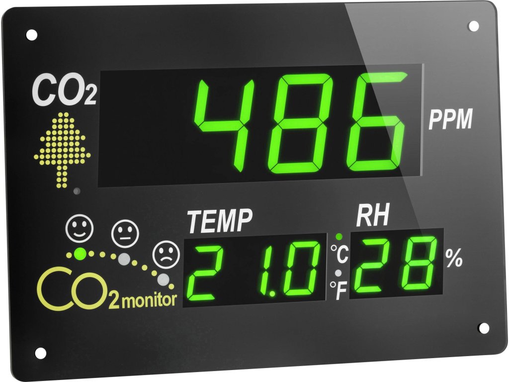Kdo dýchá dobrý vzduch je zdravější, spokojenější a může více dokázat. Příliš vysoká koncentrace CO2 ve vzduchu často způsobuje bolesti hlavy, závratě a trvalou únavu. S AIRCO2NTROL 5000 od TFA můžete kontrolovat vyčerpanost a znečištění vzduchu v místnostech, ve kterých se zdržují osoby, např. školy, kanceláře, veřejné instituce. Pomocí včasného a energeticky úsporného větrání zajistíte zdravé klima v místnosti.Monitor zobrazuje na grossformatigen displej XL ve světě viditelné barevnými LED číslice na obsah CO2 vzduchu v místnosti. Vždy podle kvality vzduchu změní se barva smajlíci ze zelené přes žlutá na červené. Navíc budete o teplotě a vlhkosti vzduchu. Jas displeje se automaticky přizpůsobí okolí.
