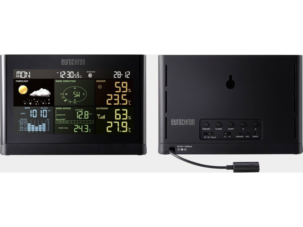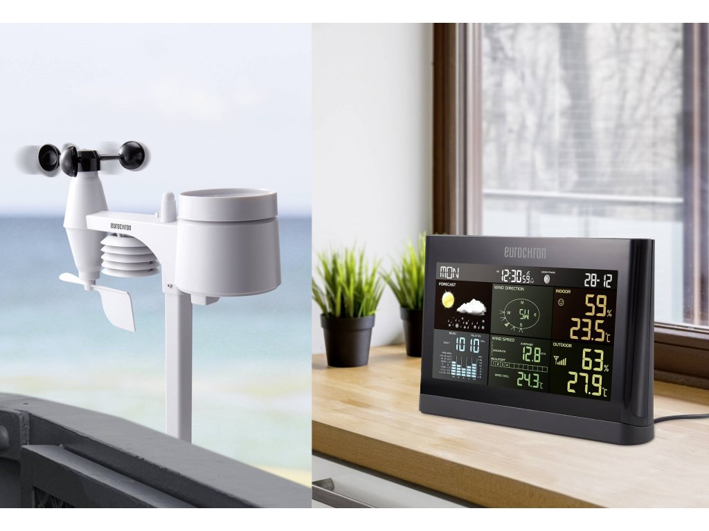 | Funkce (meteostanice): | tlak vzduchu · anemometr · pocitová teplota (Windchill) · stav baterie/akumulátoru · barevný displej · datum · den v týdnu · rosný bod · vnitřní vlhkost vzduchu · vnitřní teplota · měsíční fáze · max./min. hodnota · venkovní vlhkost vzduchu · venkovní teplota · hodiny řízené rádiovým signálem (např. DCF77) · srážkoměr · předpověď počasí · směr větru |