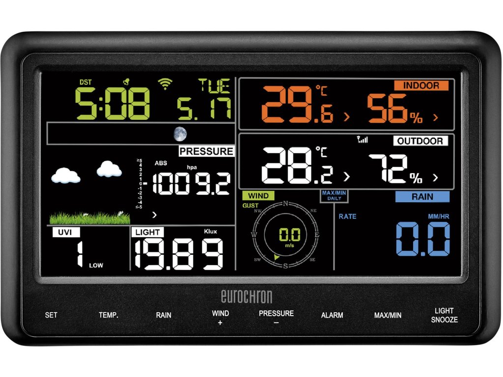 | Funkce (meteostanice): | vnitřní vlhkost vzduchu · vnitřní teplota · venkovní vlhkost vzduchu · venkovní teplota · předpověď počasí · wind chill (chlad větru) · rosný bod · tlak vzduchu · barevný displej · max./min. hodnota · Wi-Fi připojení |