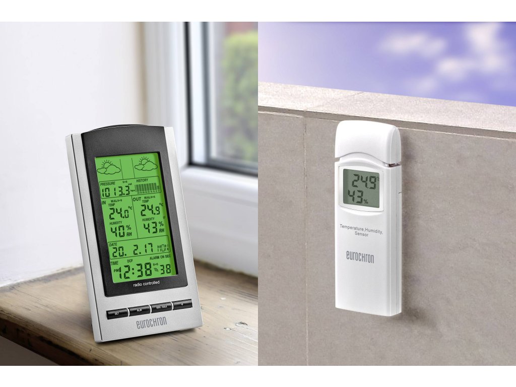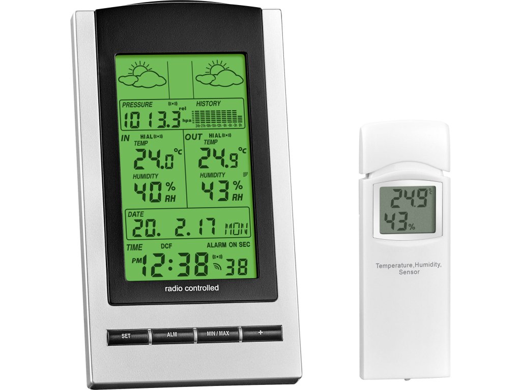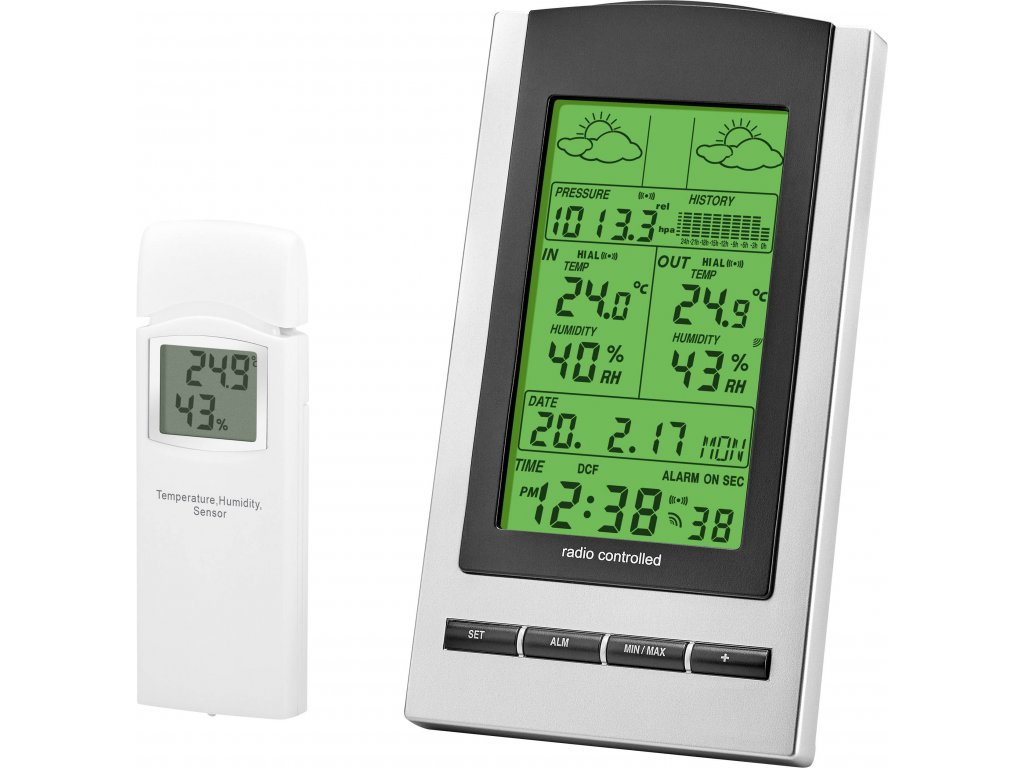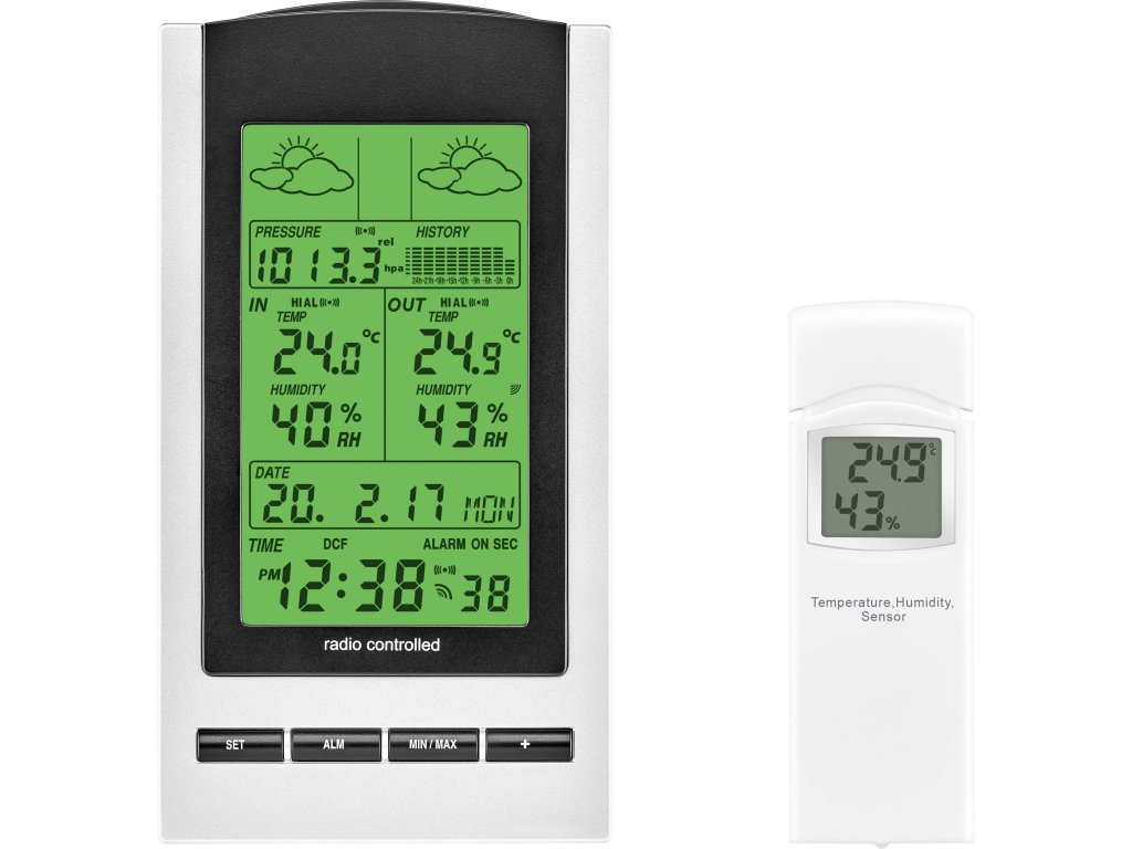 Funkce (meteostanice): | vnitřní teplota · vnitřní vlhkost vzduchu · hodiny řízené rádiovým signálem (např. DCF77) · datum · venkovní teplota · venkovní vlhkost vzduchu · rosný bod · max./min. hodnota · tlak vzduchu |