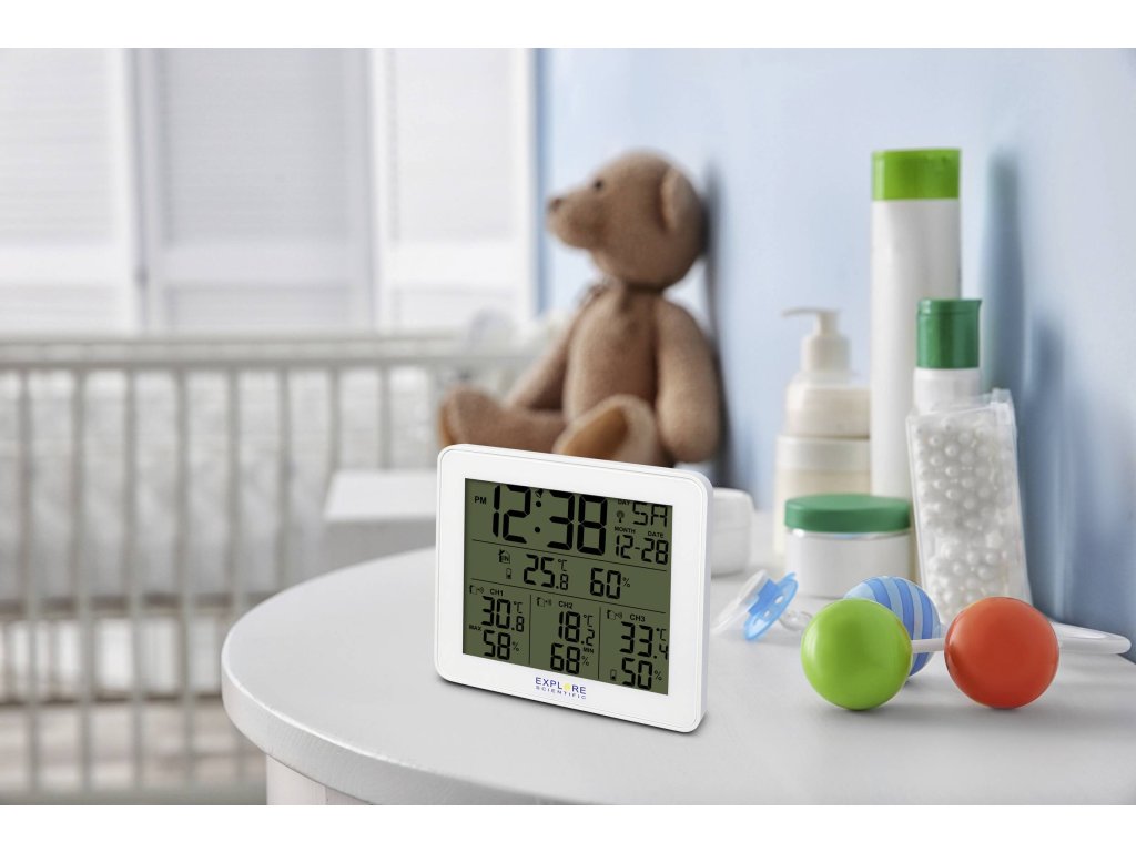 Na první pohled vás meteostanice Explore Scientific WSH4003 informuje o klimatu v místnosti: Teplotu i vlhkost vzduchu lze díky větrání nebo opravě termostatu nastavit na optimální oblast pro minimalizaci zdravotních rizik.